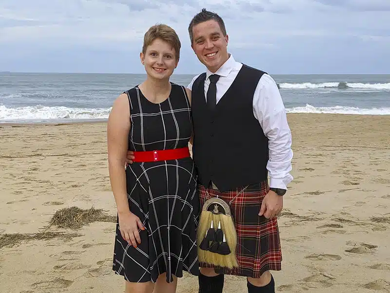 The rest of the jump went perfectly and the tartan flew like a dream. Jon’s dream got even better when he and Britton started dating shortly thereafter, and got married in 2019. The two high flyers had their ceremony at the National Warplane Museum in Genoso, New York, in front of World War II-era C-47 known as Whiskey 7. To top it all off, Britton piloted the plane that served as the couple’s reception sendoff. This tale of boldness and bravery is a moment in Sport Kilt history that was all love from the jump!