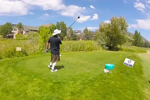 Team Sport Kilt competed in and sponsored hole 10 at our local Chamber of Commerce golf tournament, which took place at Homestead Golf Course in Midway, Utah. The tournament was raising money for the local food bank, and we were giving away embroidered golf towels to the closest in each foursome, plus a custom kilt to the overall closest to the hole winner (congratulations Tyson!)
