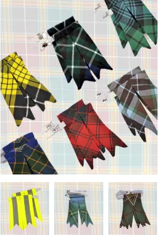 Fancy up your kilt hose cuffs with these tartan “flags” or “tassles” that poke out and say “I really put some thought into this whole get-up today” They also have the practical benefit of holding your kilt hose in place.