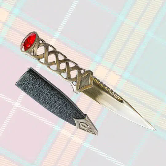 Polished stainless steel sgian dubh with woven steel handle. Sharp point and a nice edge and is definitely not a stage prop.