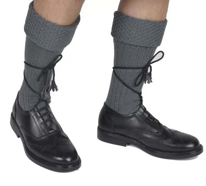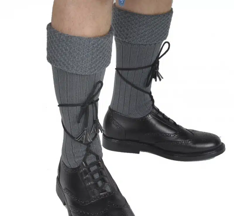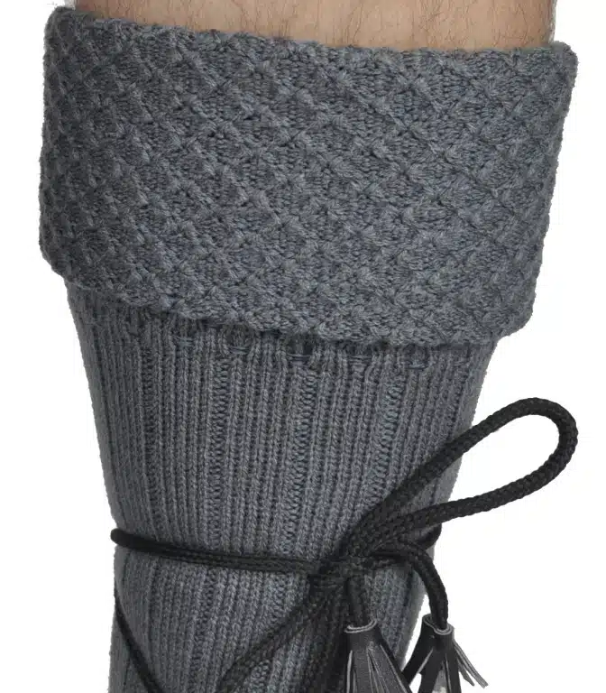 A thick, non-wool pair of kilt hose, featuring a diamond knit cuff pattern. These kilt stockings are available in Gray, Charcoal, or Navy Blue.