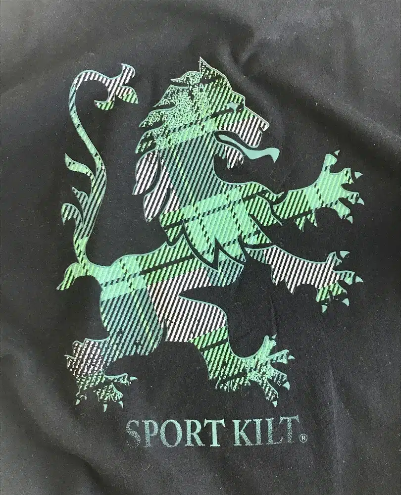 This fierce looking t-shirt featuring the Sport Kilt lion on the back in kelly Green, fierce green, and grey plaid. Made on the softest, best fitting 100% cotton t-shirt.