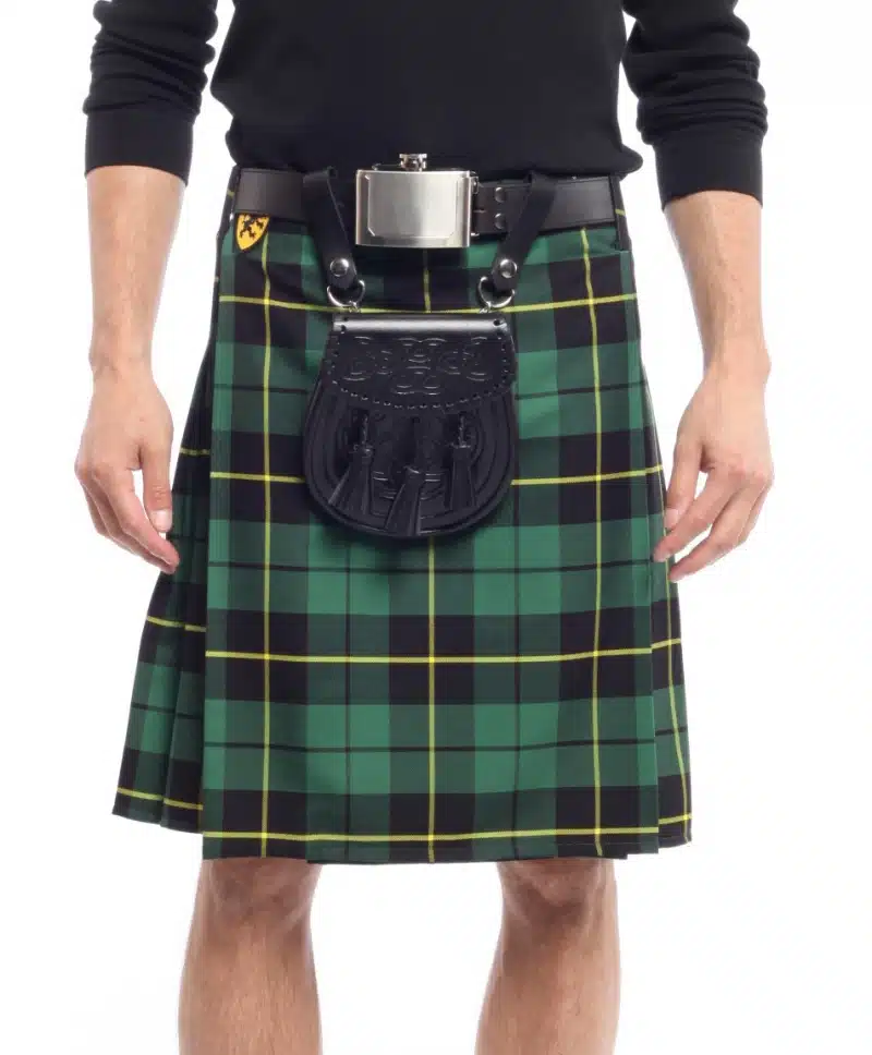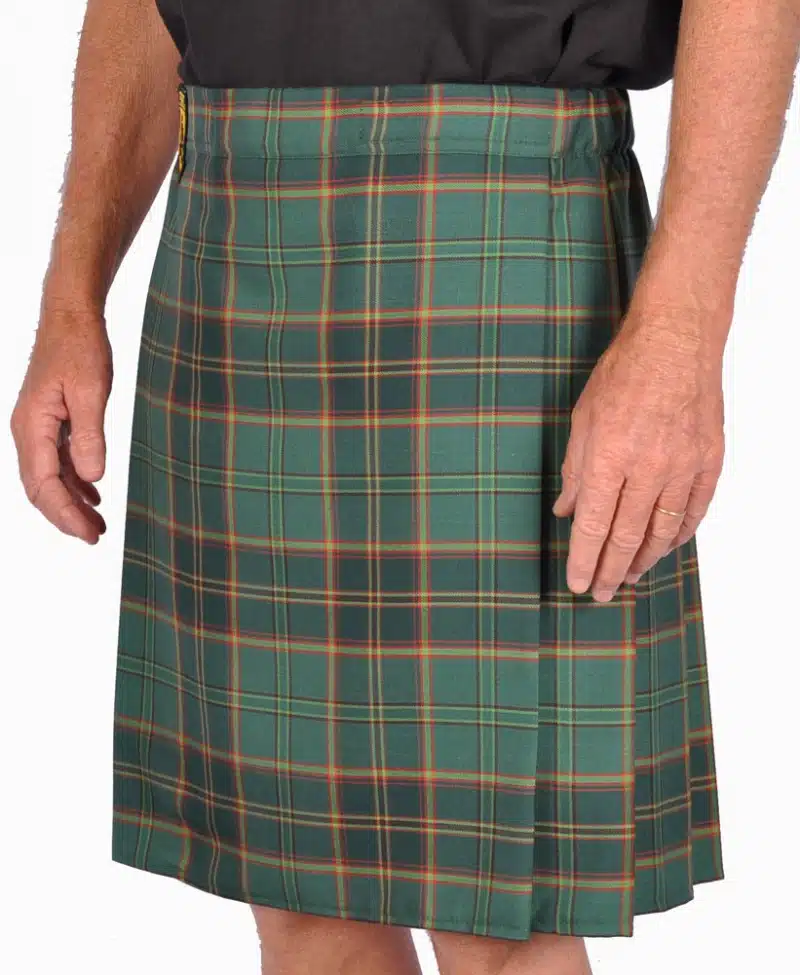 package includes a kilt in three tartans; All Ireland, St. Patrick, or Wallace Hunting. Includes an Irish Clover kilt Pin, and a pair of kilt hose.