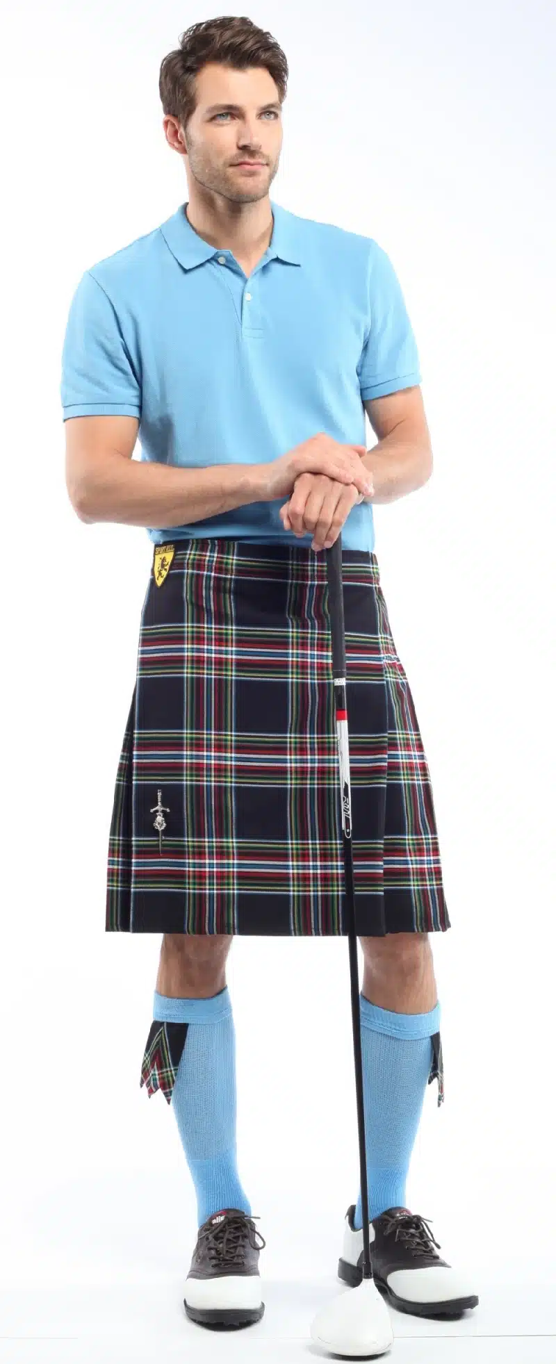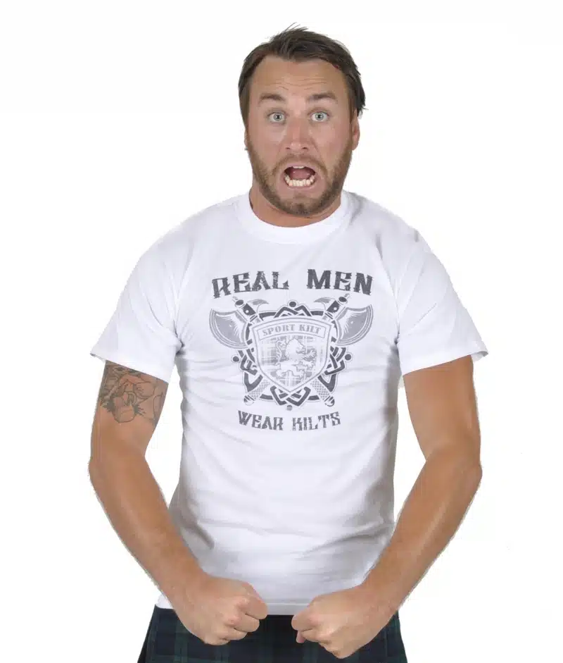 Just choose the size kilt you need, the color (tartan/plaid) kilt you’d like, the free t-shirt size, select one of three kilt pins, and your color choice of regular kilt hose. We’ll include the matching flashes and ship everything out to you ASAP!*