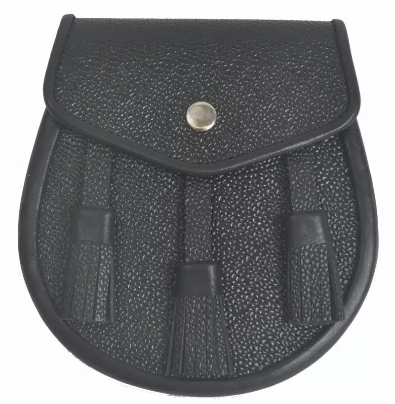 The Pebble Gran Highlander Sporran is made from real leather featuring a pebble grain texture. Functional snap closure and accordian style pouch hold all your essentials.