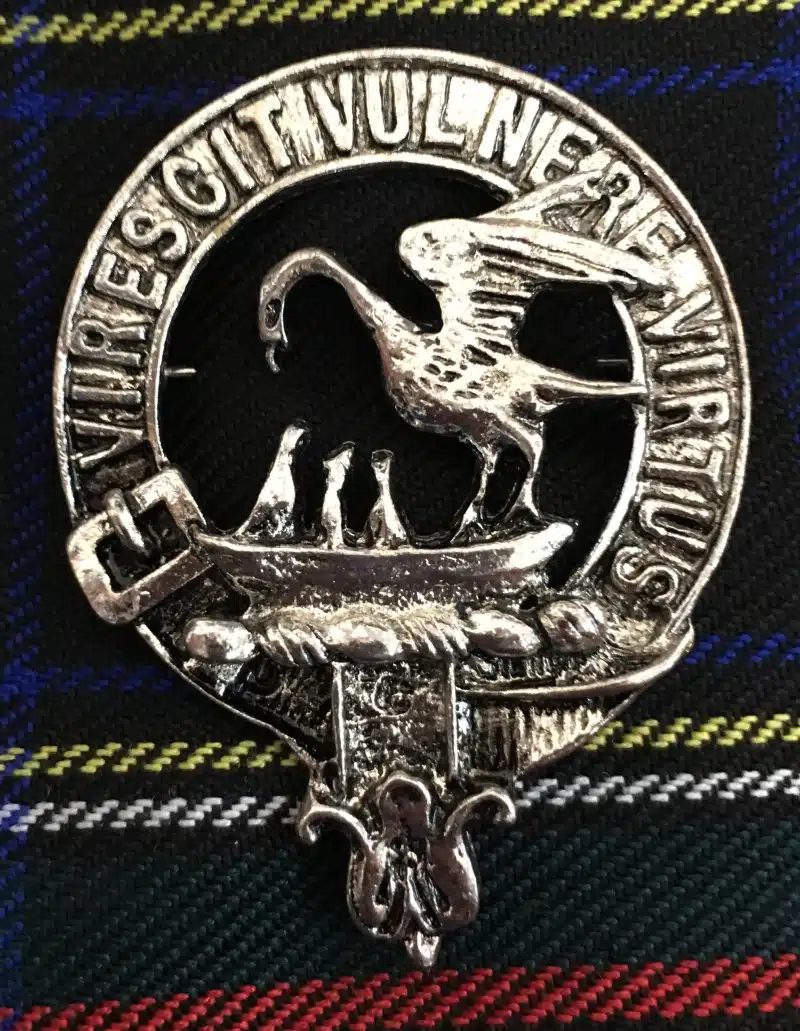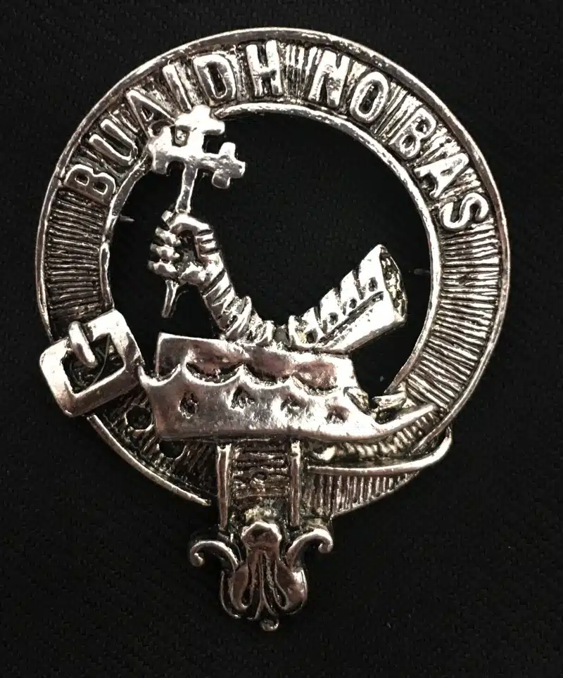 A Scottish Clan Crest Badge. Perfect for your fly plaid, shawl, Glengarry or Balmoral cap. Available in these Scottish Clans:
