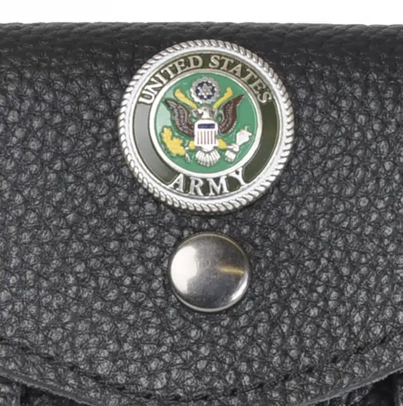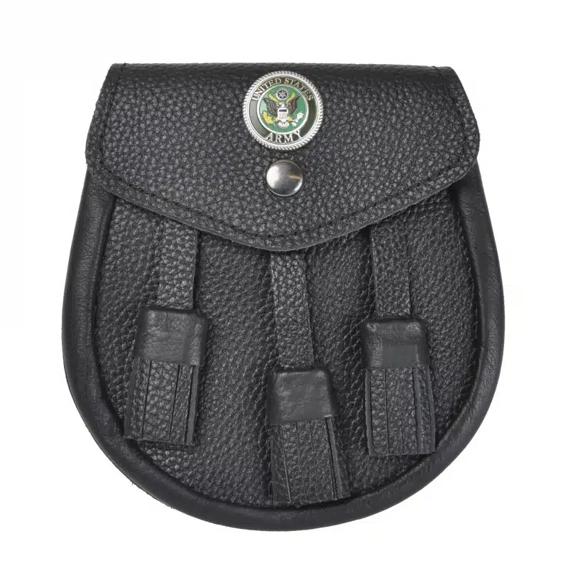 US Army Emblem Sporran – Full Color Baked Enamel emblem on our Highlander Black Leather Sporran.