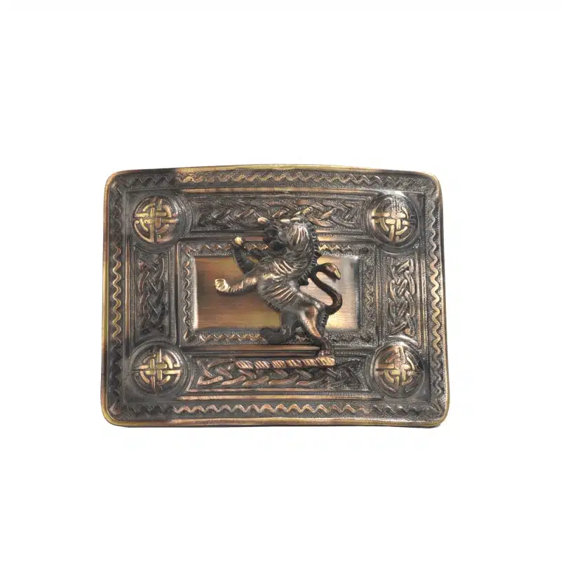 Features a high-relief Rampant Scottish lion design in deep bronze finish.